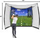RANGE CAGE: Practice with confidence with real golf balls; Cage design provides built-in shank nets on each side & protective netting on top; Features a high density woven polyester blank simulator screen for use with golf simulators (not included)